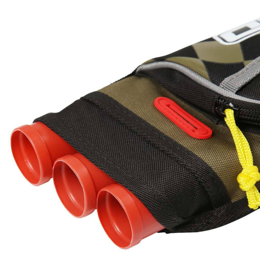 | Особенности | 3 отделения под стрелы, карман на молнии для аксессуаров, крепится крюком на ремень |