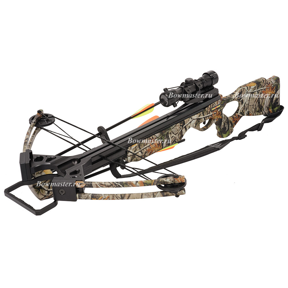 | Комплектация | Оптический прицел 4х32, Кивер на 4 стрелы, 4 алюминиевые стрелы (наконечники 125 гран), Ремень, Натяжитель. |