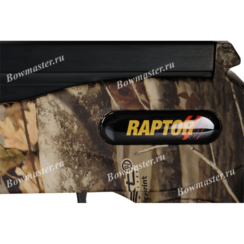 В конструктивном плане арбалет Raptor представляет собой классический рекурсив, достаточно простой, но в то же время максимально надёжный. Длина арбалета составляет 98 см, а масса без учёта дополнительного оснащения - 3,51 кг. Raptor не является рекордсменом по части компактности, но передвигаться по пересечённой местности или сидеть в засаде с ним вполне удобно. Не случайно эту модель сразу после презентации взяли себе на заметку заядлые любители арбалетной стрельбы. Raptor окрашен в камуфляжный рисунок осеннего типа, отличающийся высоким качеством исполнения и хорошей проработкой деталей. Такое покрытие обеспечивает отличную маскировку на любой лесной местности.
