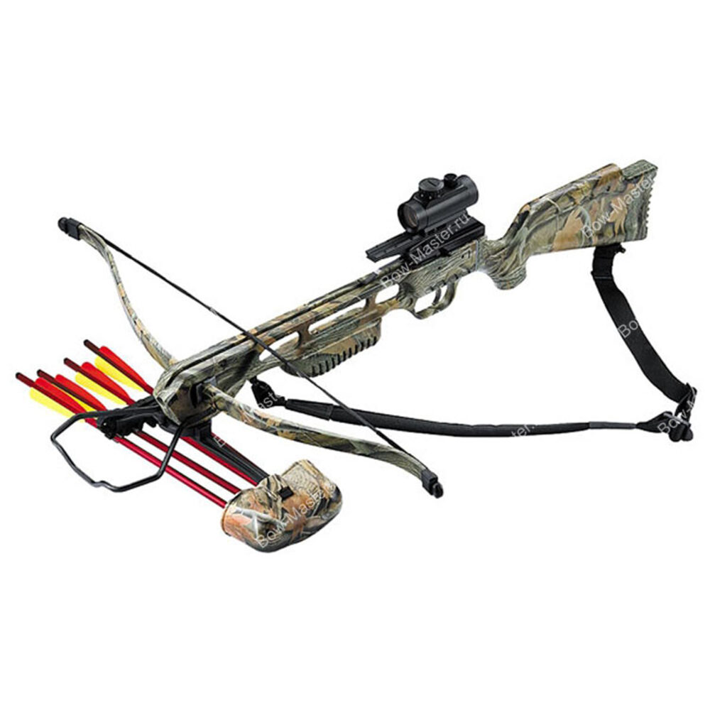 Комплектация Коллиматорный прицел RedDot 1x30, Алюминиевые стрелы - 4 шт, Кивер на 4 стрелы, Ремень, Стрингер для замены тетивы