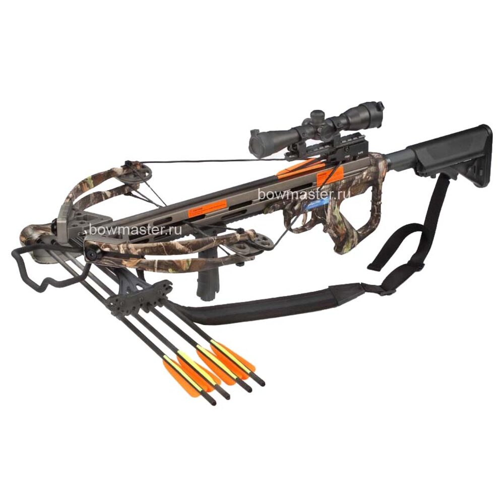 Комплектация Оптический прицел с подсветкой, сменный тыльник, рукоятка тактическая, кивер, натяжитель тетивы, ремень, стрела арбалетная карбон 4 шт, воск