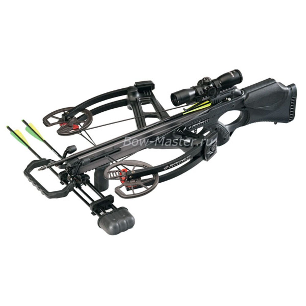 | Комплектация | Оптический прицел 3x32, кивер для 3-х стрел, 3 карбоновые стрелы, натяжитель - Rope Cocking Device |