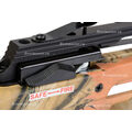 Рекурсивный арбалет mk 150A1AC поставляется вместе с диоптрийным прицелом открытого типа. Его можно калибровать по высоте, или же по направлению, а мушка прицела регулировке не поддаётся. Модель была оснащена автоматическим предохранителем, который обезопасит стрелка от совершения выстрела по неосторожности или в холостую. Срабатывает предохранитель автоматически, а снять его можно одним движением пальца. Несколько слов о сбалансированности конструкции. После заряжания подвижное стремя арбалета mk 150A1AC убирается под цевье, что решает проблему перевеса орудия и делает стрельбу более комфортной и точной.