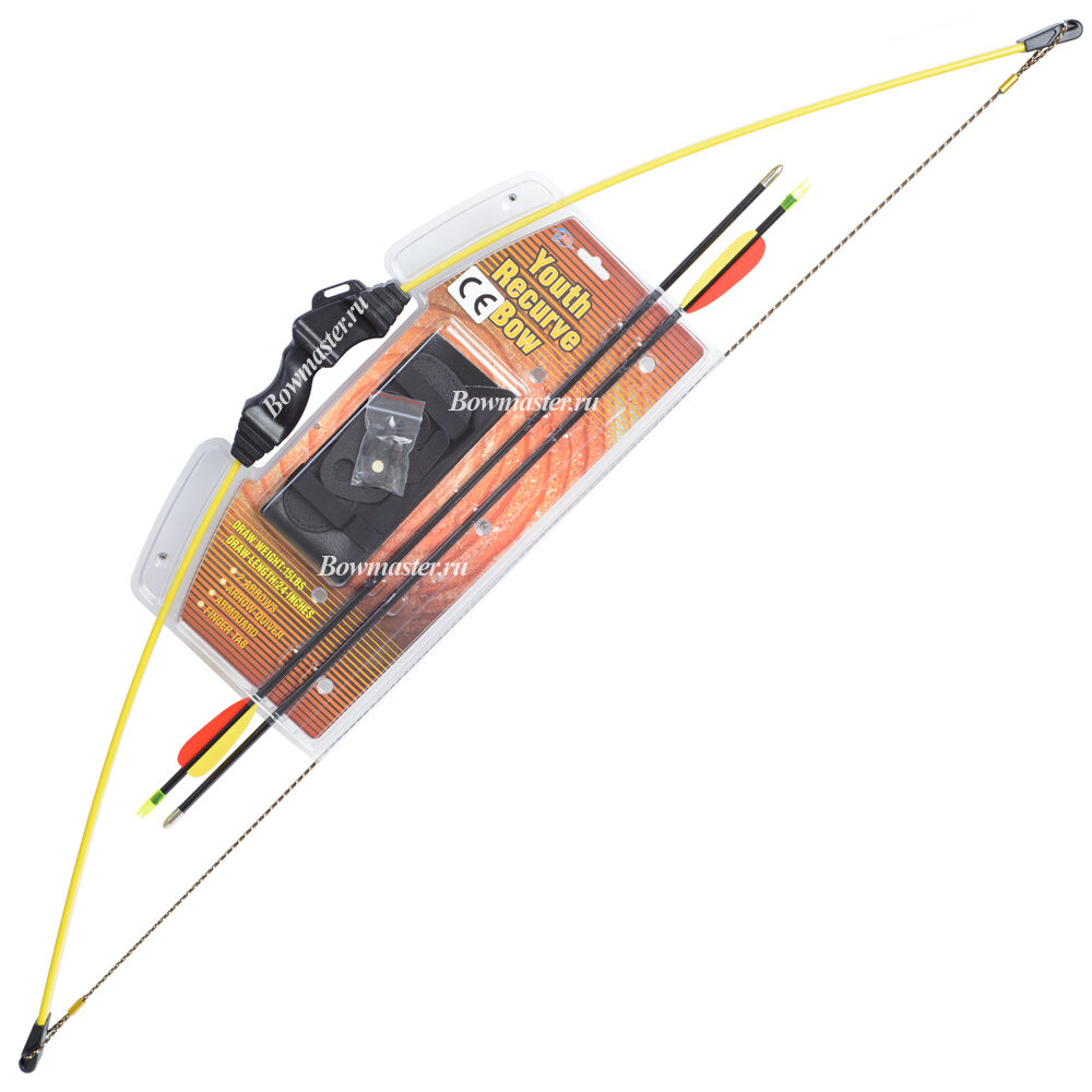 Комплектация Пластиковая полочка, прицельная планка с одной мушкой, две фиберглассовые стрелы 26, колчан, крага, напальчник